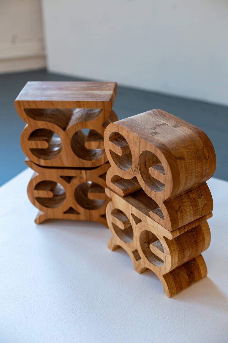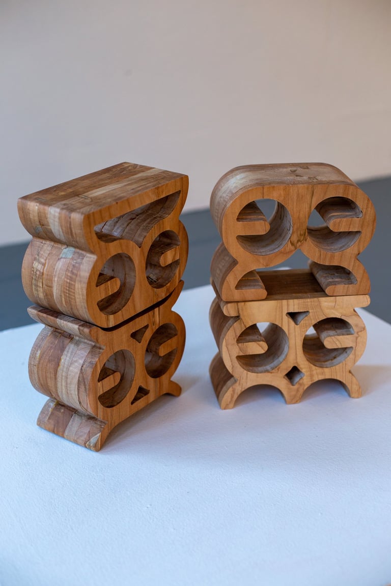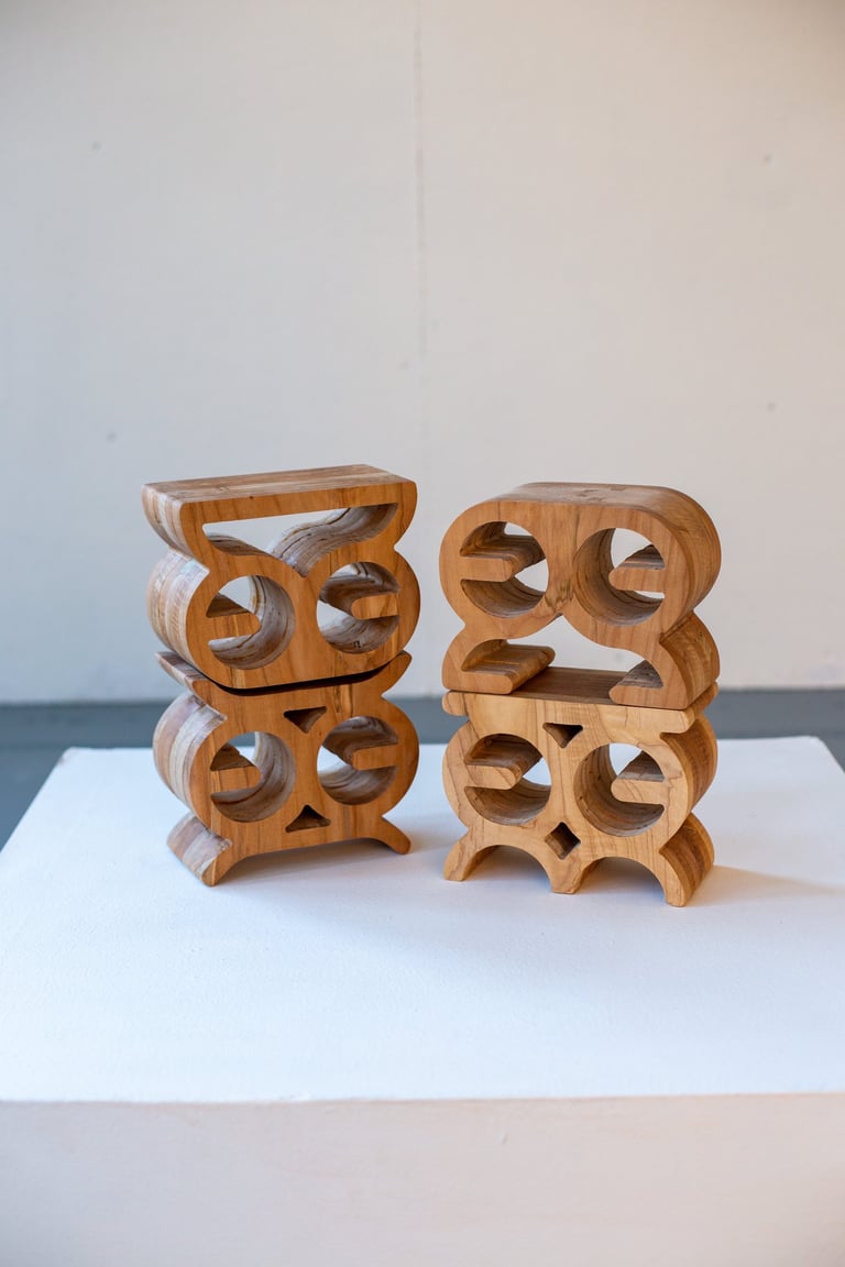 The Maquettes began as an experiment, but quickly became something more intimate, a way for me to process memory through form. I was thinking about the carved language of Akan stools, how they hold meaning beyond their shape, how they carry stories, presence, and power in silence.